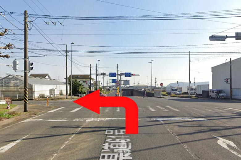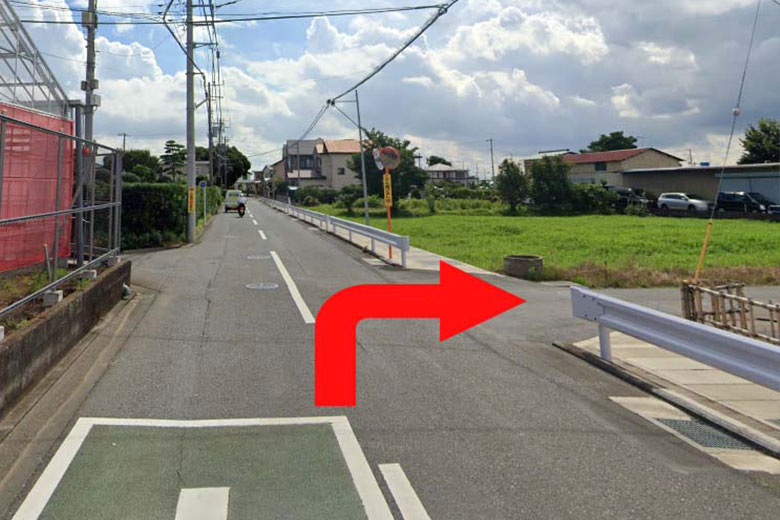 02 約50m先のところにある一つ目丁字路を右折してください。